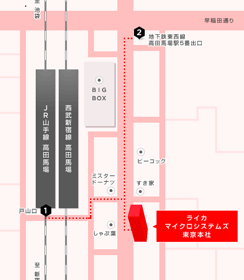 戸山口からの経路を表示する (GoogleMap) - 地下鉄東西線 高田馬場駅 5番出口